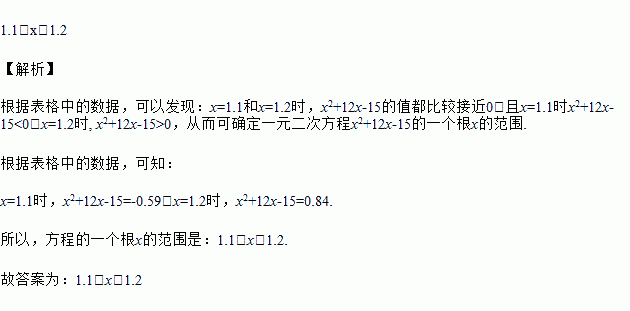 由此可估算方程x2+12x-15=0的一个根x的范围是________.