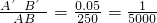 解:取米作为共同的长度单位,那么AB=250米,A'B'=0.05米,
