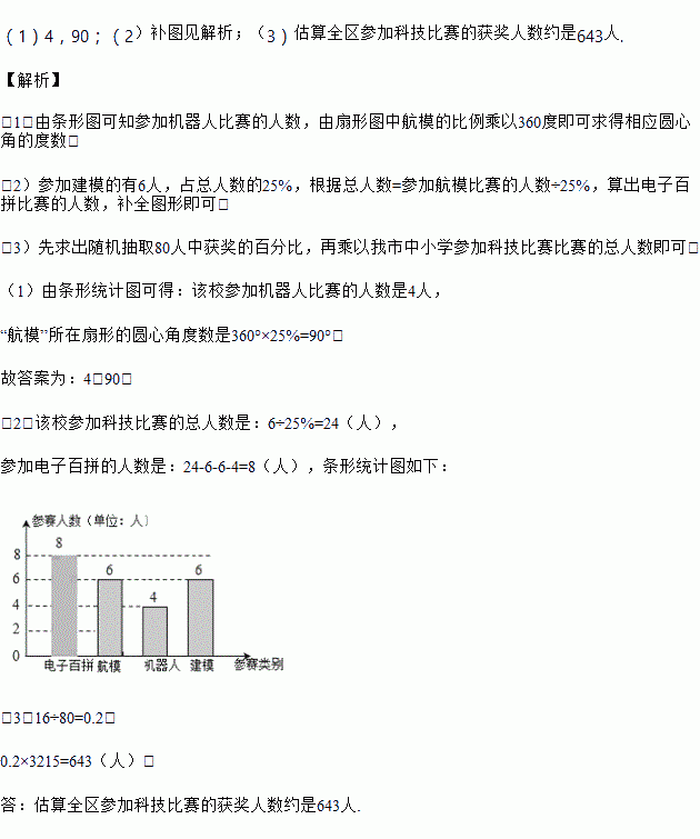 某区举办科技比赛,某校参加科技比赛(包括电子百拼、航模、机器人、建模四个类别)的参赛人数统计图如图