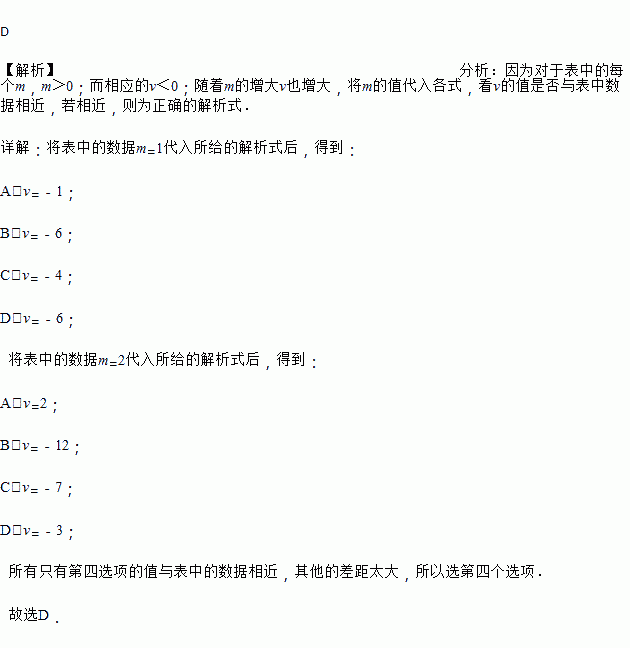 A. v=m2﹣2 B. v=﹣6m C. v=﹣3m﹣1 D. v=![]()