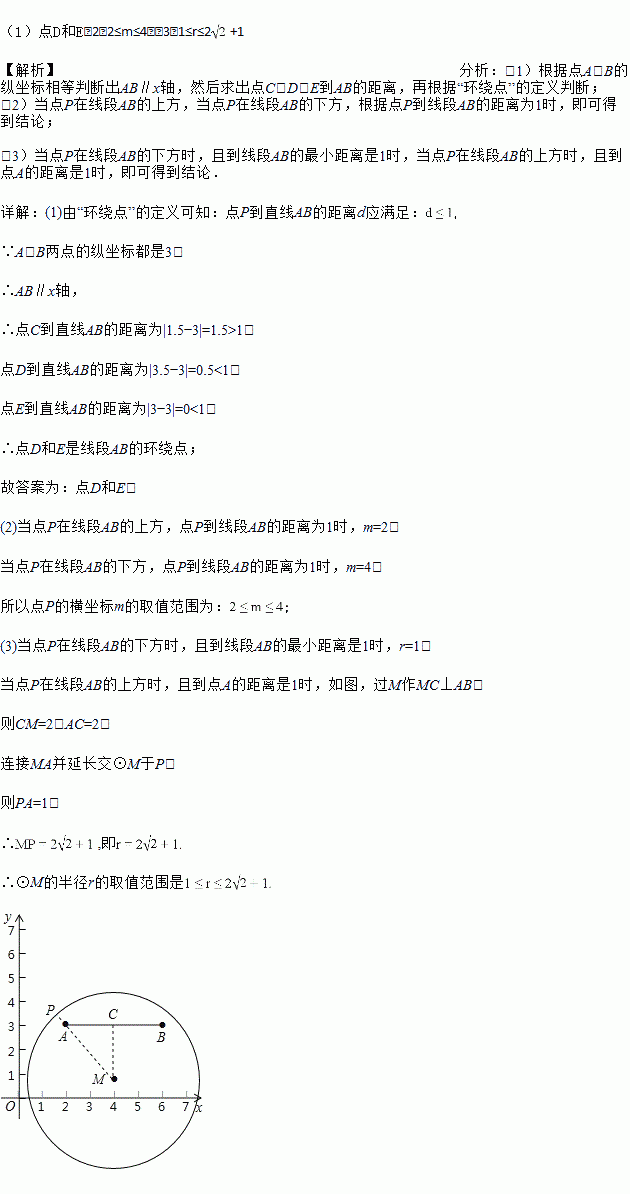 (1)已知点C(3,1.5),D(4,3.5),E(1,3),则是线段AB的“环绕点”的点是 ;