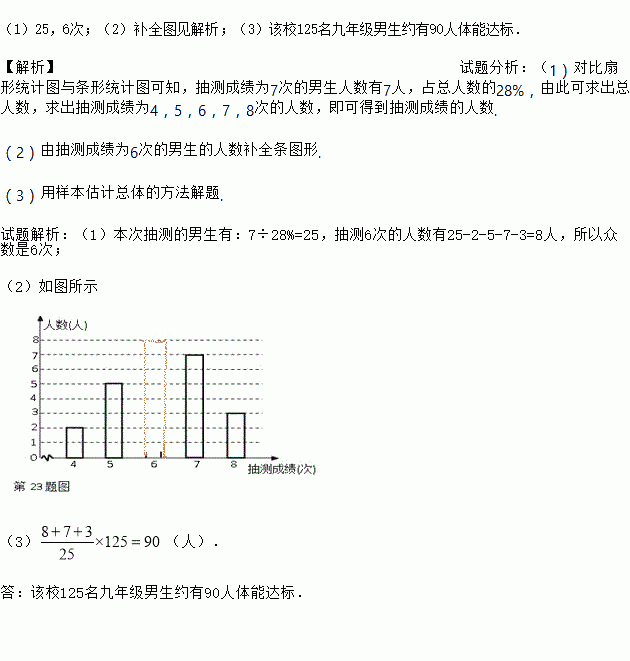 (3)若规定引体向上6次以上(含6次)为体能达标,则该校125名九年级男生中估计有多少人体能达标?