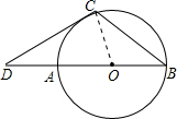 分析:(1)连接OC,得到∠AOC=60°,由CD=CB得到∠D=30°,在△DOC中求出∠DCO=90°,证明DC是⊙O的切线.