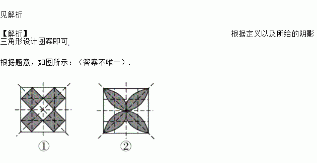 正方形绿化场地拟种植两种不同颜色的花卉,要求种植的花卉能组成轴对称图形.下面是两种不同设计方案中的一部分,请把图1、图2补成轴对称图形,并画出一条对称轴(在你所设计的图案中用阴影部分和非阴影部分表示两种不同颜色的花卉).