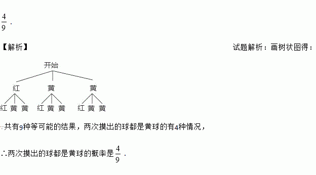 一个布袋内只装有一个红球和2个黄球,这些球除颜色外其余都相同,随机摸出一个球后放回搅匀,再随机摸出一个球,则两次摸出的球都是黄球的概率是_____.