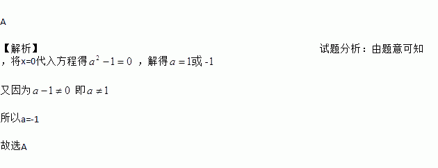 A 【解析】试题分析:由题意可知,将x=0代入方程得,解得 又因为即 所以a=-1 故选A