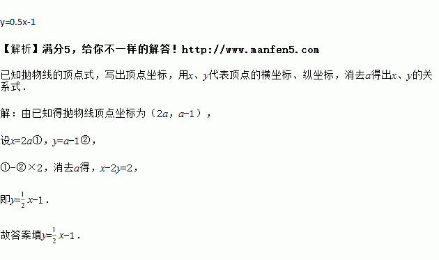 已知二次函数y=(x-2a)2+(a-1)(a为常数),当a取不同的值时,其图象构成一个“抛物线系”.如图分别是当a=-1,a=0,a=1,a=2时二次函数的图象.它们的顶点在一条直线上,这条直线的解析式是____________________.