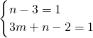 方程2xn-3-y3m+n-2+3=0是二元一次方程,则m=________n=________.