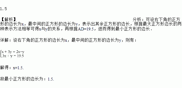 如图,矩形ABCD是由6个正方形组成,其中AD=19.5,则图中最小的正方形边长是________.