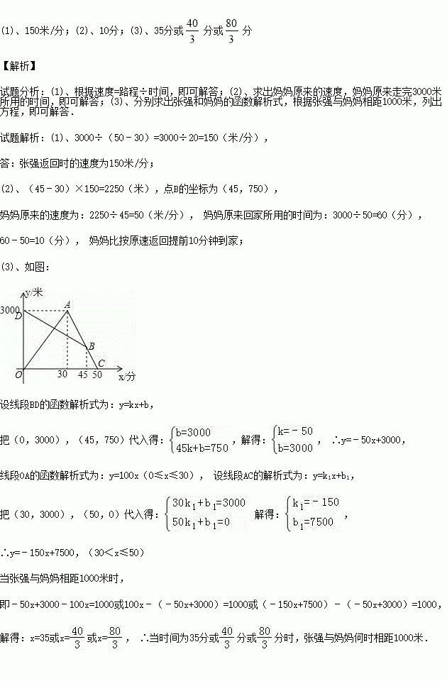 £¨3£©ÇëÖ±½Óд³öÕÅÇ¿ÓëÂèÂèºÎʱÏà¾à1000Ã×£¿