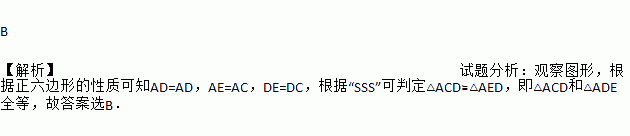 如图为八个全等的正六边形紧密排列在同一平面上的情形。根据图中标示的各点位置,判断△ACD与下列哪一个三角形全等( )