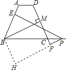 分析:首先过点B作BH∥CD,交PF的延长线于点H,易证得四边形BMFH是平行四边形,即可得BG=FH,又可证得△PBE≌△PBH,即可得PH=PE,继而证得PE=PF+BM.
