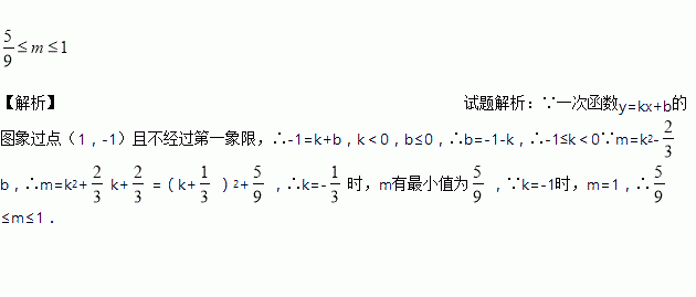 已知一次函数的图象过点且不经过第一象限,设,则m的取值范值是__;