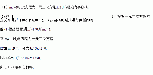 (2)当m=2时,不解方程,请判断该方程是否有实数根?