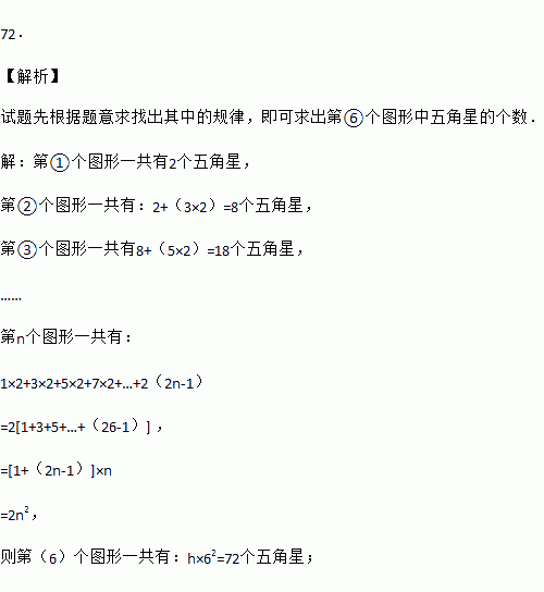 下列图形都是由同样大小的五角星按一定的规律组成,其中第①个图形一共有2个五角星,第②个图形一共有8个五角星,第③个图形一共有18个五角星,,则第⑥个图形中五角星的个数为______.