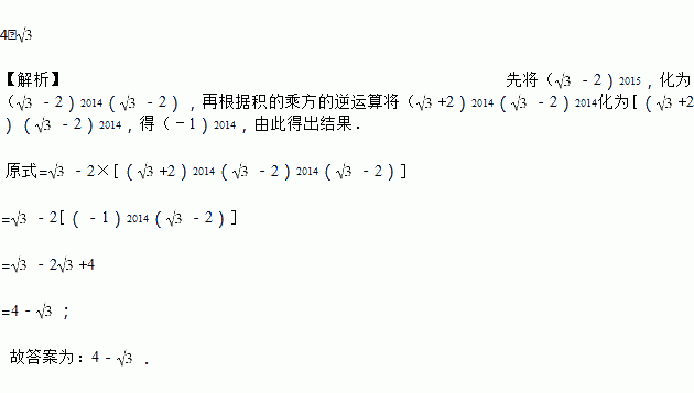 计算:﹣2(+2)2014(﹣2)2015=________.