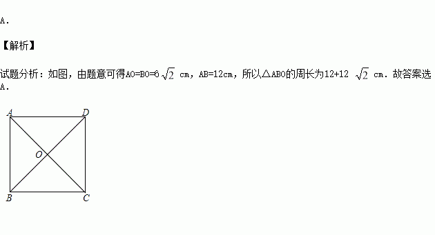 在正方形ABCD中,AB=12cm,对角线AC、BD相交于O,则△ABO的周长是( )