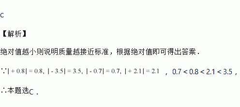 若足球质量与标准质量相比,超出部分记作正数,不足部分记作负数,则在下面4个足球中,质量最接近标准的是( )