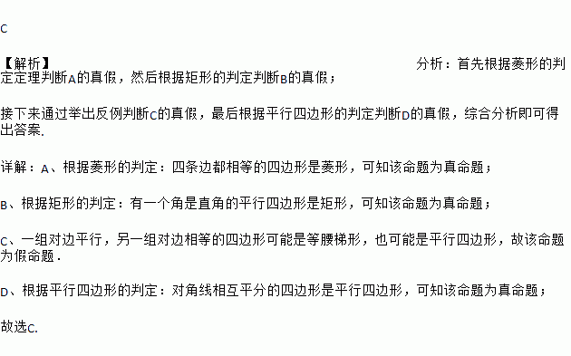 C. 一组对边平行另一组对边相等的四边形是平行四边形