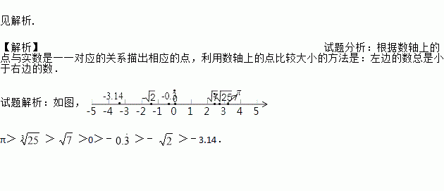 在数轴上表示下列各数,并用“>”把它们连起来:﹣ ,﹣ ,0, , ,π,﹣3.14.