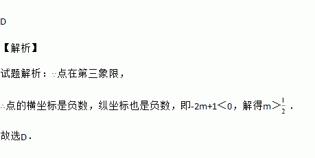 在平面直角坐标系中,点(-7,-2m+1)在第三象限,则m的取值范围是( )