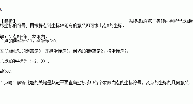 点M在第二象限内,M到x轴是距离是3,到y轴距离是2,那么点M的坐标是( )