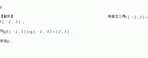 规定以下两种变换:①f(m,n)=(m,﹣n),如f(2,1)=(2,﹣1);②g(m,n)=(﹣m,﹣n),如g(2,1)=(﹣2,﹣1)。按照以上变换有:f[g(3,4)]=f(﹣3,﹣4)=(﹣3,4),那么g[f(﹣2,3)]等于(  )