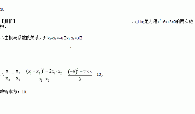 方程x2+6x+3=0的两个实数根为x1,x2,则=__________.