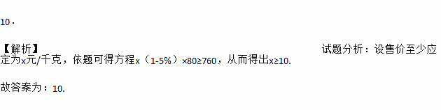 商家花费760元购进某种水果80千克,销售中有5%的水果正常损耗,为了避免亏本,售价至少应定为 元/千克.