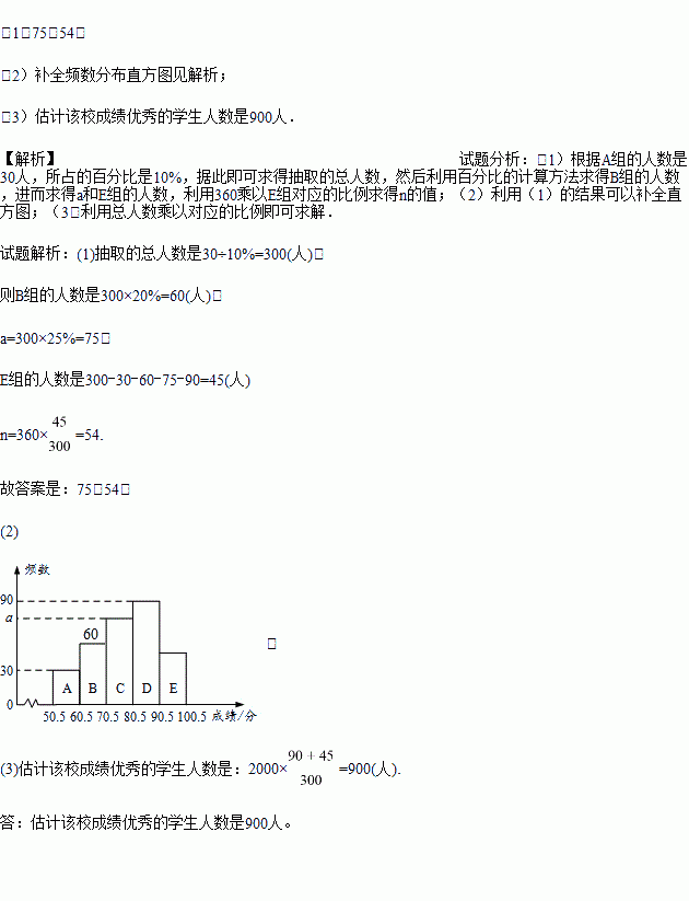 (3)该校共有2000名学生.若成绩在80分以上的为优秀,请你估计该校成绩优秀的学生人数.