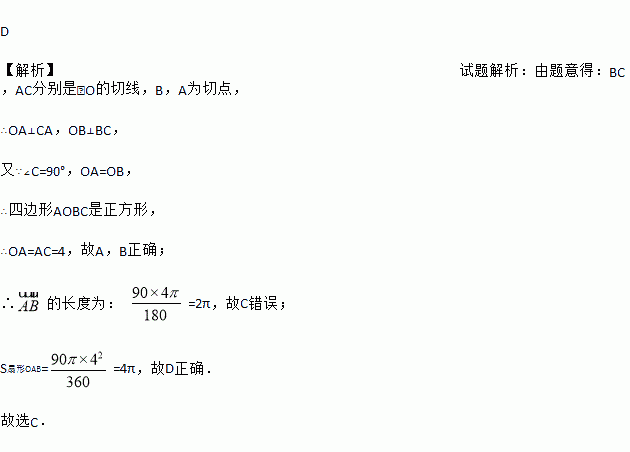 C. 弧AB的长度为4πcm