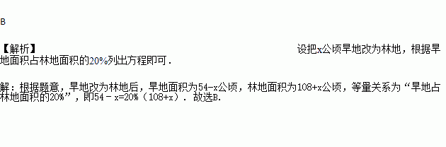 某村原有林地108公顷,旱地54公顷,为保护环境,需把一部分旱地改造为林地,使旱地面积占林地面积的20%.设把x公顷旱地改为林地,则可列方程( )