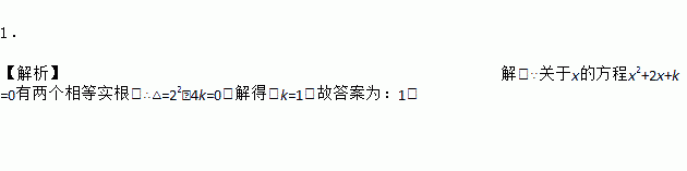 方程x2+2x+k=0有两个相等实根,则k=______.