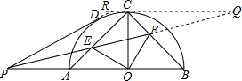 18.分析 如图,过C作CQ∥AB,交PF的延长线于Q,交PD的延长线于R,证得CQ是⊙O的切线,根据切线长定理得到RC=RD,根据平行线和角平分线得到∠Q=∠DPQ,证得DP=CQ,通过△CEQ∽△AEP,△CQF∽△BFP,得到$\frac{AE}{EC}=\frac{PA}{CQ}$,$\frac{CF}{FB}=\frac{CQ}{PB}$,根据切割线定理得到PD2=PA•PB,化为$\frac{PA}{CQ}=\frac{CQ}{PB}$,等量代换得到$\frac{AE}{CE}=\frac{CF}{FB}$,根据合比性质得$\frac{AE}{AC}=\frac{CF}{BC}$,推出△AEO≌△OCF,即可得到结论.