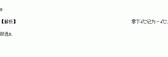 如果零上7℃记作+7℃,那么零下4℃记作 ( )