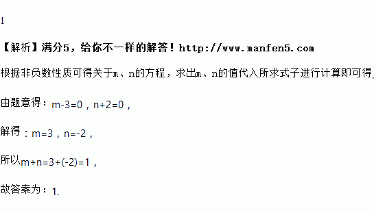 若|m﹣3|+(n+2)2=0,则m+n的值为__________