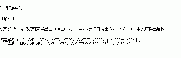 如图,已知∠CAB=∠DBA,∠CBD=∠DAC.求证:BC=AD.