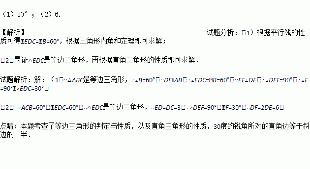 如图所示,在等边△ABC中,点D,E分别在边BC,AC上,且DE∥AB,过点E作EF⊥DE,交BC的延长线于点F.