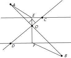 AB、CD交与O点,过O点作两河岸的距离(垂直线)交两河岸与点E与点F,
