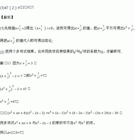 (2)已知多项式与的乘积中不含与的项,求、的值.