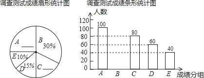 (1)参加调查测试的学生共有 人,扇形C的圆心角的度数是; .