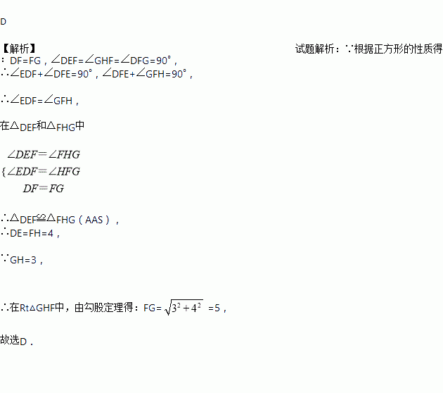 将三个大小不同的正方形如图放置,顶点处两两相接,若正方形A的边长为4,正方形C的边长为3,则正方形B的边长为( )