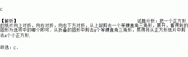 把一个正方形三次对折后沿虚线剪下,如图所示,则所得的图形是( )