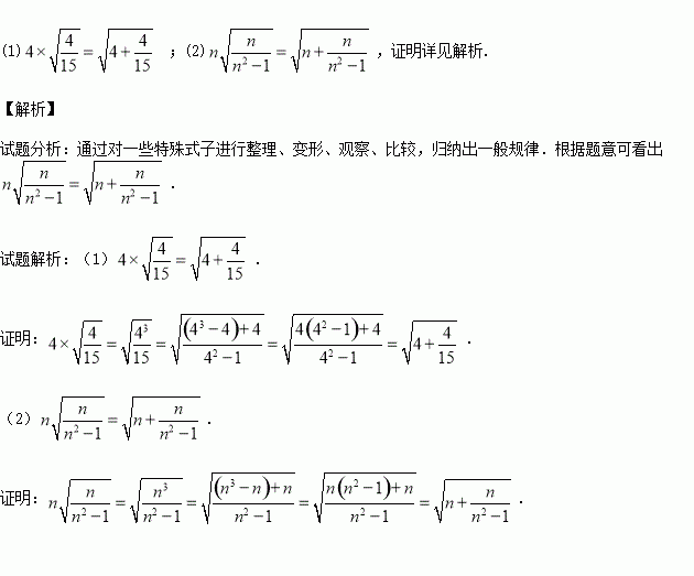 (2)请写出满足上述规律的用n(n为任意自然数,且n≥2)表示的等式,并加以验证.