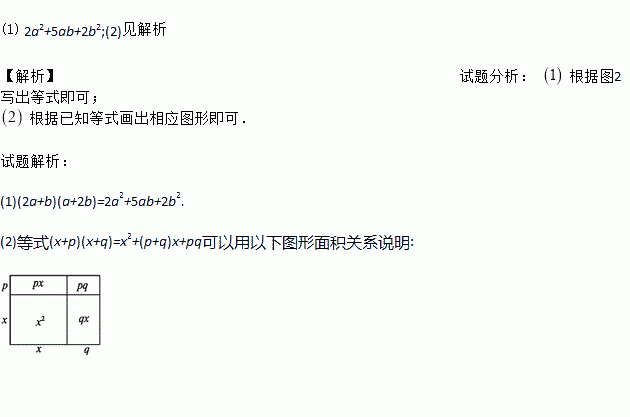 (2)已知等式(x+p)(x+q)=x2+(p+q)x+pq,请画出一个相应的几何图形加以说明.