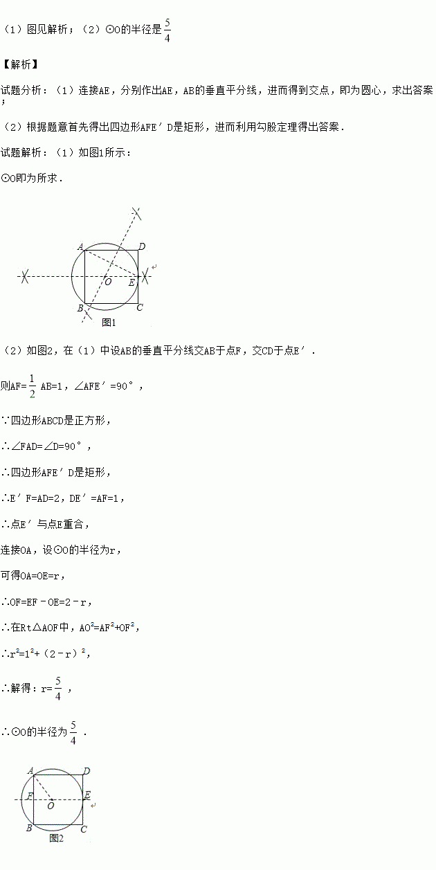 (2)若正方形ABCD的边长为2,求(1)中所作⊙O的半径.