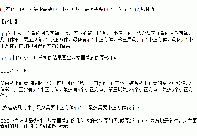 (1)这样的几何体只有一种吗?它最少需要多少个小立方块?最多需要多少个小立方块?