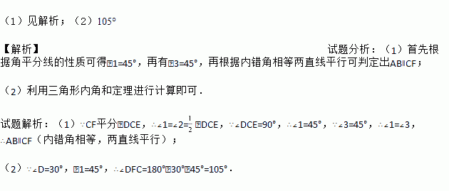 将一副三角板拼成如图所示的图形,过点C作CF平分∠DCE交DE于点F.