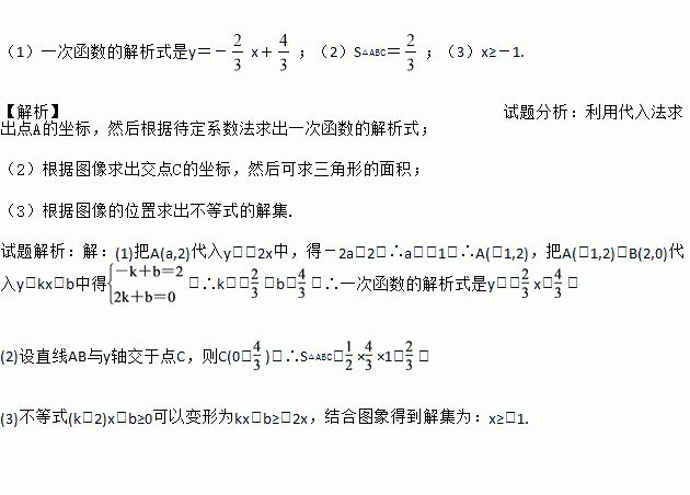 如图,直线y=-2x与直线y=kx+b相交于点A(a,2),并且直线y=kx+b经过x轴上点B(2,0).