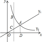 | B. | 当x>$\sqrt{3}$时,y2>y1 | |